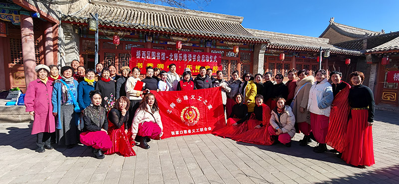 启动仪式后,由北师乐缘义工之家志愿者带来的文艺展演精彩上演:欢快热烈的舞蹈《我们的生活充满阳光》、优雅大方的时装秀《情不自禁爱上你》、韵味悠长的女声独唱《梨花颂》、质朴生动的情景剧《军民大生产》、慷慨激昂的诗朗诵《中国话》、经典传神的京剧《喜盈盈进画堂》、舒展优美的舞蹈《鸿雁》节目精彩纷呈,充分展现了志愿者们昂扬向上、乐于奉献的精神风貌。 活动最后,主持人致结束语,再次感谢桥西区文化馆的鼎力支持,感谢北师乐缘义工之家队长吴浩然的统筹引领,感谢全体工作人员与参演志愿者的辛勤付出,并邀请大家走进阅读室参观交流。全体人员集体合影,北师乐缘读书会启动仪式在温馨和谐的氛围中圆满落幕。