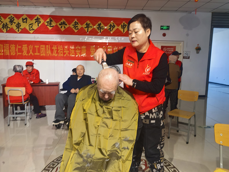 农历二月二,龙抬头,春风送暖,民俗传情。为传承中华优秀传统文化,弘扬尊老敬老传统美德,在这一吉祥喜庆的日子里,福德仁爱公益队在队长毛艳芳带领下,走进建兴养老养护中心,开展以“龙抬头,送安康,爱心义剪、义诊暖夕阳”为主题的公益志愿服务活动,用贴心陪伴与专业服务,为老人们送去安康与祝福。