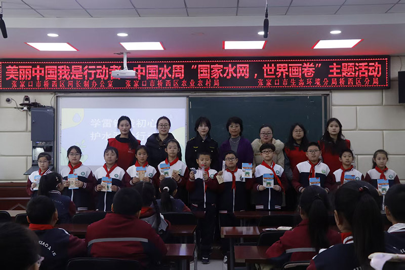 2026年3月22日是第三十四届“世界水日”,主题为“水与性别”;3月22至28日是第三十九届“中国水周”,主题为“国家水网 世纪画卷”。为提升公众生活饮水健康素养水平,深入推进健康环境促进行动和气候变化健康适应行动,3月20日,白鹭环保志愿者服务队联合张家口学院环境与旅游学院、张家口市桥西区农业农村局、张家口市桥西区河长制办公室、张家口市生态环境局桥西区分局,在张家口市桥西区逸夫回族小学组织开展了主题为“国家水网 世纪画卷”的宣传活动。