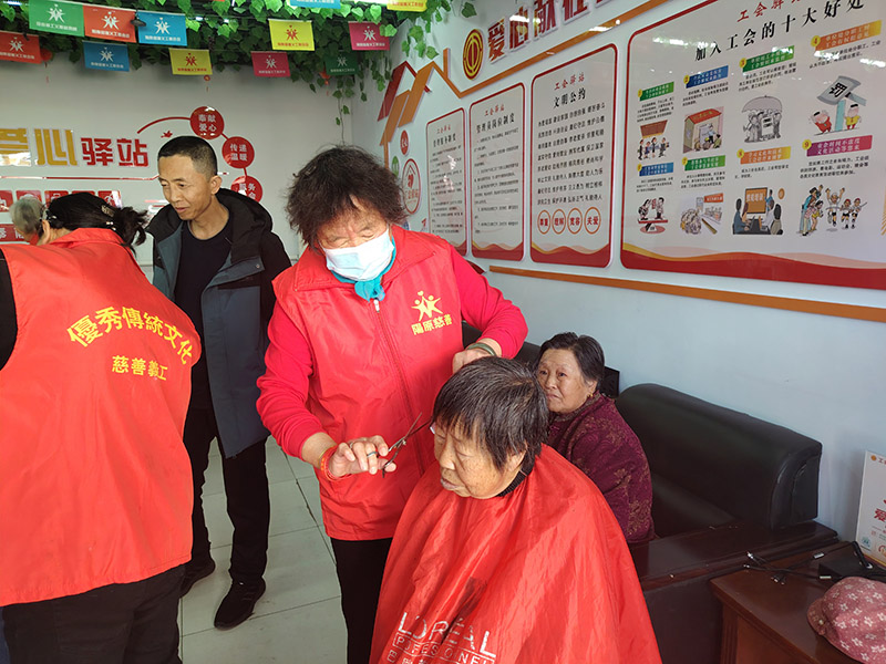 大家一到现场,便迅速行动,默契配合,熟练地整理场地、摆放工具,以最快速度投入志愿服务。没有豪言壮语,只有踏实行动;不求名利回报,只愿群众舒心。一把剪刀、一份耐心、一片真心,她们用娴熟的技艺,为社区老人、居民群众修剪出清爽利落的发型,把一件件看似平常的 “头上小事”,做到群众心坎上。