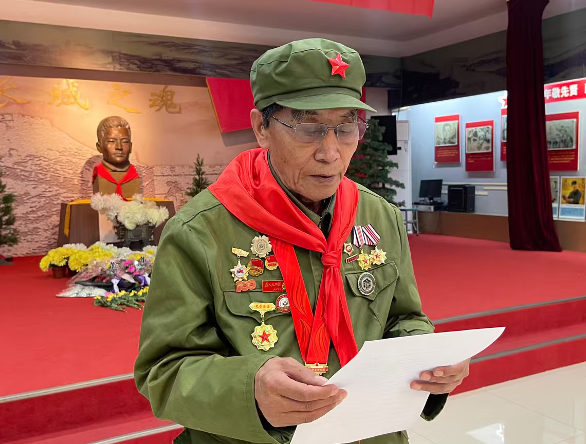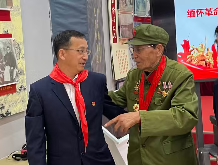 福德仁爱公益队志愿者李书庭、周中华全程参与活动,与师生代表共同向多松年烈士塑型敬献鲜花,以庄重的仪式感表达对先烈的追思 。活动中,86岁的李书庭为孩子们生动讲述了多松年的英雄事迹,让红色故事直抵童心 ;在沉浸式体验中感悟英烈精神 。