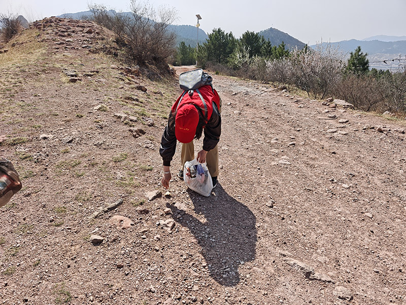 在轻松愉悦的氛围中,志愿者们沿着盘山路出发,途经古长城遗址,伴随着侯宝存老师的详细介绍,一路欣赏春日美景、交流互动,在亲近自然中舒缓身心、增进情谊,进一步增强了义工队伍的凝聚力与向心力。大家重点清理沿途路面、草丛及景观周边的塑料垃圾、纸屑、果皮等杂物,严格做好垃圾分类收集,做到“随手捡、彻底清”,不留卫生死角。