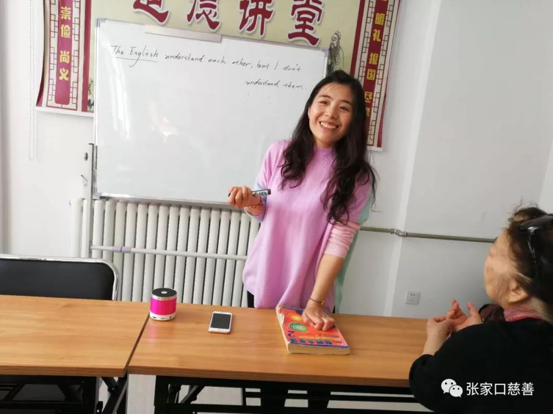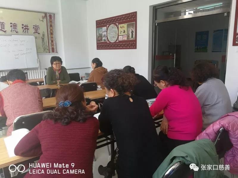 2019年4月10日,张家口慈善义工联合会冬奥英语老年志愿服务队英语培训班在怡安街社区进行第56次活动。蔚芳老师主讲,效果良好。