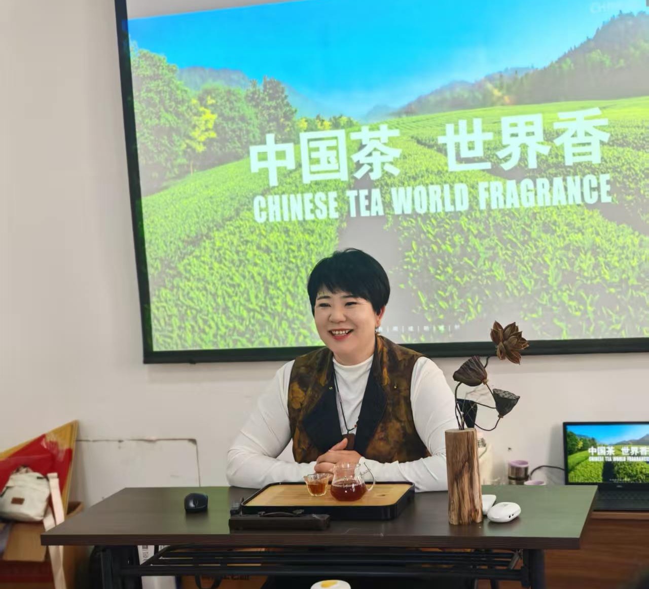致辞结束后,专业茶艺讲师张萍带领大家走进博大精深的茶文化世界。老师细致讲解经典七碗茶文化,深入浅出拆解七碗茶层层意境:从初饮润喉、清爽回甘,到渐饮舒展身心、涤荡俗世烦忧,再到品尽茶香、安然静心,逐一详解每一碗茶独有的韵味与寓意。生动通俗的讲解,让厚重悠远的传统茶文化鲜活生动,在场众人尽览千年茶韵底蕴,真切体悟清茶之中蕴藏的东方风雅与人生智慧。