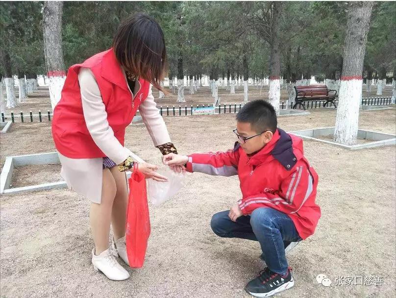 祭奠活动结束后,“爱之赢公益荟”的志愿者们响应桥东慈善义工联合会的倡议由队长武冬云、副队长徐果、杨佳丽带领着队员王晓乐、杨俊林、徐亚楠、云静、仝颜勇及三位小志愿者段玥彤、仝书瑶、陈家兴在烈士陵园景区内清理垃圾。在段玥彤和徐果带领下,大家清理了道路两侧及绿化带中的烟头、糖纸、塑料袋、纸巾、果壳等。虽然这些垃圾看似不起眼,却严重影响了整个烈士陵园的环境卫生。队长说:捡垃圾就是捡财富,于是大家争先恐后捡了起来,经过我们的努力不一会儿便把陵园清理干净了,在捡垃圾的过程中,家长不仅跟孩子培养了更亲密的亲子关系,同时也言传身教的让孩子们感受到了乱扔垃圾的坏处,大家在捡拾的过程中感觉身心愉悦。在最后队员们在队旗前承诺