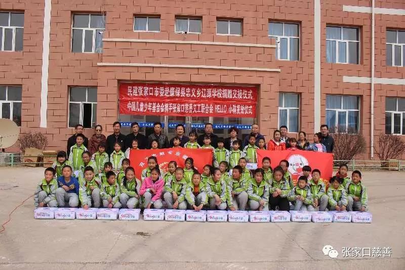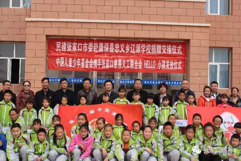 2019年4月19日,张家口市慈善义工联双工发展专委会携手民建张家口市委,赴康保县忠义乡辽源学校举行捐赠交接仪式,暨中国儿童少年基金会携手张家口慈善义工联合会“HELLO 小孩”发放仪式。