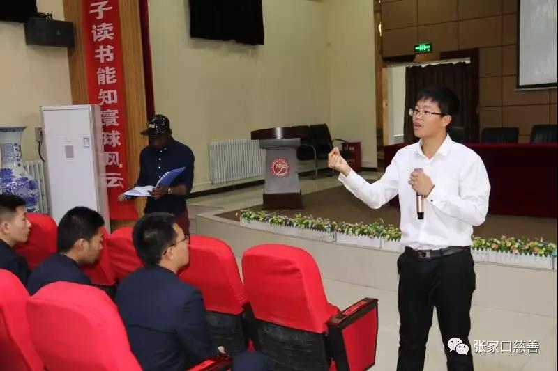 为培养志愿者对英语口语的激情,激发志愿者开口大胆讲英语、表达自我、展现风采的勇气,提高志愿者的英语口语水平,2019年5月26日下午,张家口东方中学青年志愿者协会第九期“英语角”活动在校多功能报告厅如期举行。此次活动有幸邀请到张家口慈善义工联合会冬奥英语专业委员会会长侯群峰,张家口慈善义工联合会冬奥英语专业委员会拟任会长王倩和冬奥英语国际志愿服务队志愿者DJ进行交流指导。活动由协会会长白云龙主持。
