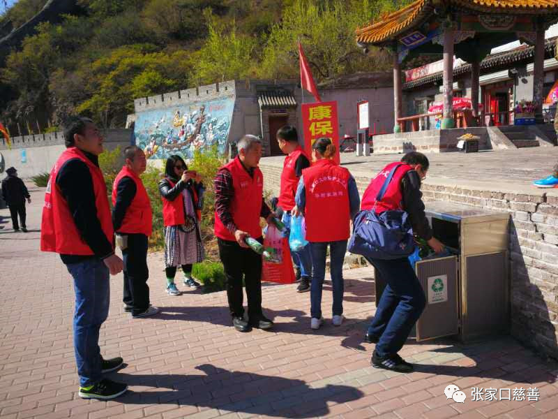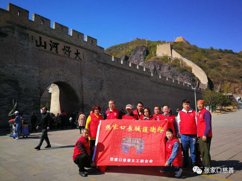 由北京市慈善义工联合会发起的“迎五一——节日零垃圾”活动,张家口慈善义工联合会积极响应呼吁各志愿服务团队积极加入践行环保理念,创建全国文明城市,引导全民参与生态文明建设,张家口长城护卫队响应号召。在2019年5月1日上午8点30分,张家口长城护卫队的11位队员在大境门广场和大境门长城上捡拉圾,大家互相配合,不怕脏,不怕累,发扬长城精神,为创建文明,绿色的城市奉献自己的力量。