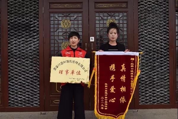 张家口厚德万全公益促进会至成立以来,得到了理事单位的大力支持,理事单位是本会重要的组成部分,对我会今后的不断发展壮大起着举足轻重的作用。2019年5月7日,厚德万全公益促进会副理事长尹存杰、张秀娟,理事贾永琴、朱红霞一同前往,授予理事单位张家口德垣餐饮管理有限公司牌匾及“真情相依 携手爱心”锦旗一面。