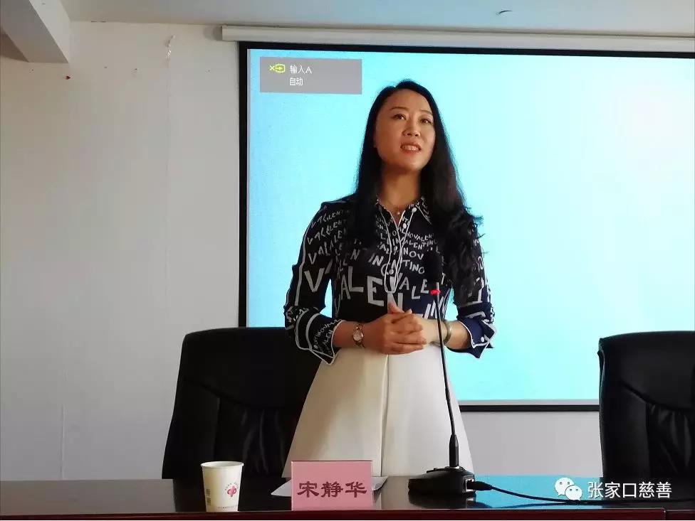 河北慈善联合基金会理事长宋静华女士在仪式上致辞,表示感谢各位领导以及在场的爱心人士能够参加授牌仪式并宣布授牌仪式正式开始。由宋静华理事长为工作站主任颁发铜牌和聘书,工作站主任臧沙沙在接过后表示深感责任重大,感谢领导们对我的信任,同时感谢河北慈善联合基金会在张家口慈善义工联合会成立工作站。