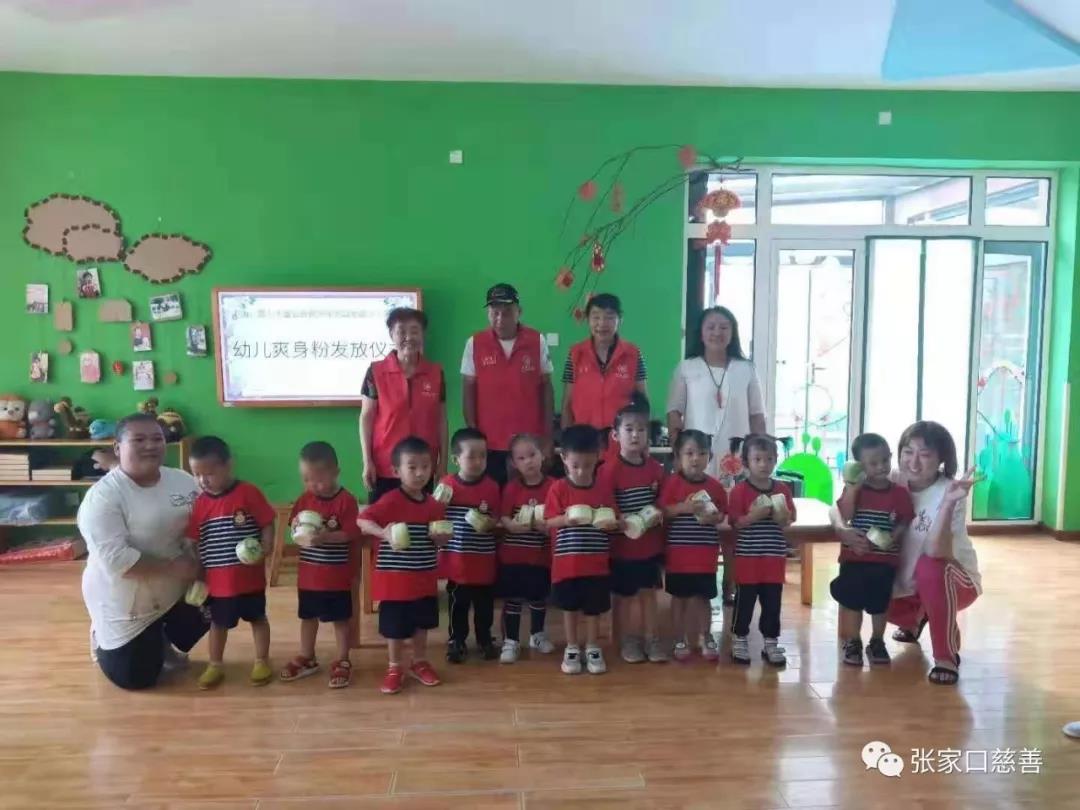 2019年7月10日,中国儿童少年基金会携手张家口经开区慈善义工联合会“幼儿爽身粉”捐赠活动在经开区三明幼儿园成功举办。出席本次捐赠活动的有经开区党总支副书记张和平、经开区炫美夕阳红舞蹈队队长王英、副队长杨顺 、志愿者黄淑敏、赵翠荣,园长聂锦霞。