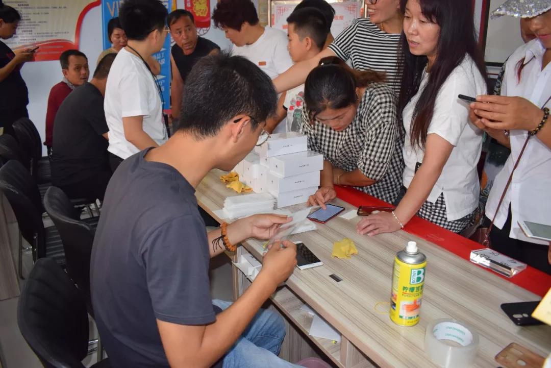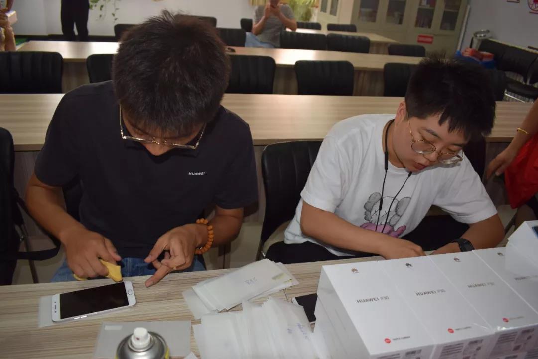 张家口华为总代组织的工作人员为志愿者手机细心贴膜,同时也给志愿者普及一些使用手机常识和购买手机技巧,志愿者有序排队,和工作人员一起找手机膜型号、为手机消毒除尘,体现良好志愿者服务精神。 |