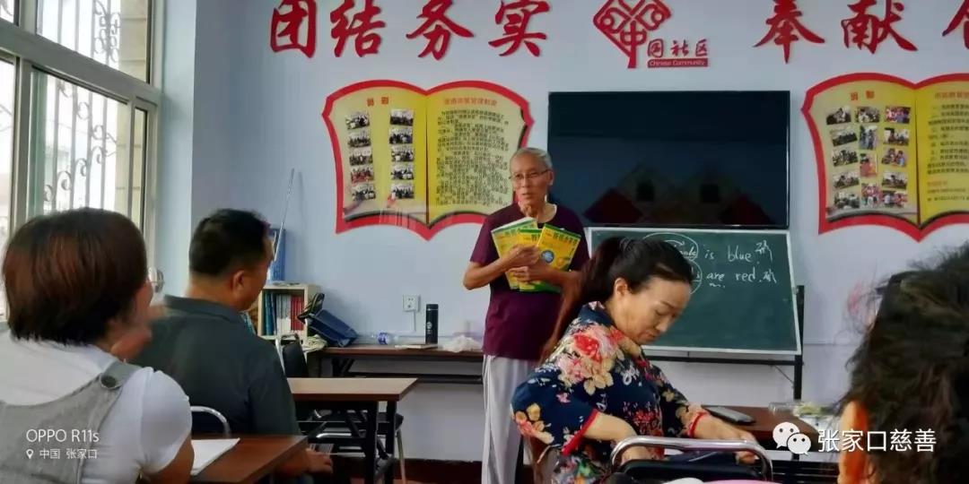 二、英语培训班在东河沿社区进行 2019年7月18日上午,冬奥英语老年志愿服务队英语培训班在怡安街社区进行第177次活动。侯宝存讲授系表结构be动词的运用规律,俚语Under the rose。由于增加了趣味性,课堂气氛相当活跃。
