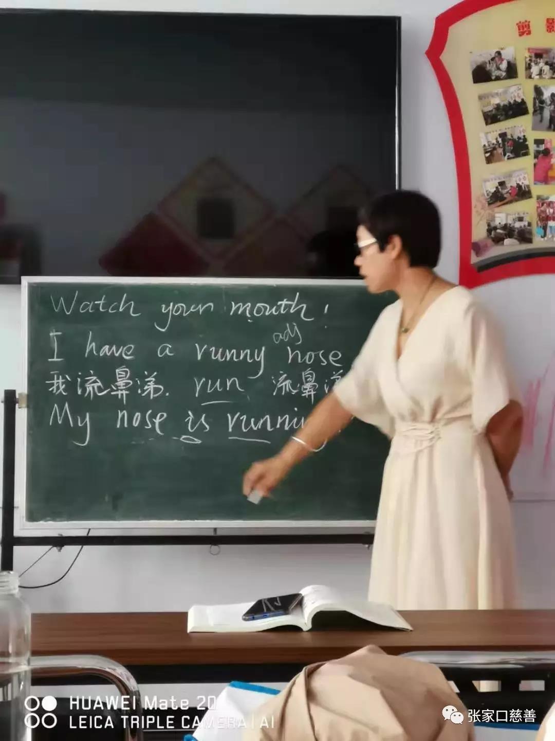 右一为侯宝存老师 一、英语培训班在东河沿社区进行 2019年7月18日上午,冬奥英语老年志愿服务队英语培训班在东河沿社区进行第176次活动。侯宝存讲英语俚语Break a leg,英语形容词性的物主代词,大家进行了充分的练习,反映不错。