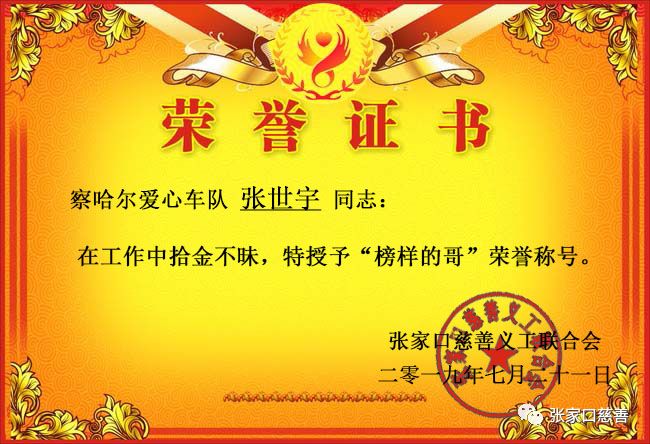 2019年7月18日,察哈尔爱心车队T0058张世宇师傅,捡到手包一个,内有各种证件和物品,及时联系失主并归还被表扬。这种拾金不昧的精神,值得我们大家学习!