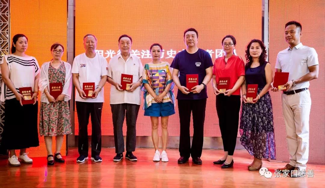 特别感谢为本次活动提供赞助的爱心企业家和社会贤达: 张家口市慈善义工联合会顾问 高禄光 宗华视宝视力服务中心董事长 孟凡勇 张家口忻能源有限公司董事长 忻加佳 张家口康垣宜养科技有限公司董事长 孟 富 河北东照线缆张家口分公司总经理 王树恒 享安养老公司董事长 周志飞 阳光行团队副秘书长 杨建军 康林商贸有限公司董事长 寇艺贤 张家口嘉辉装饰公司董事长 王晓斌