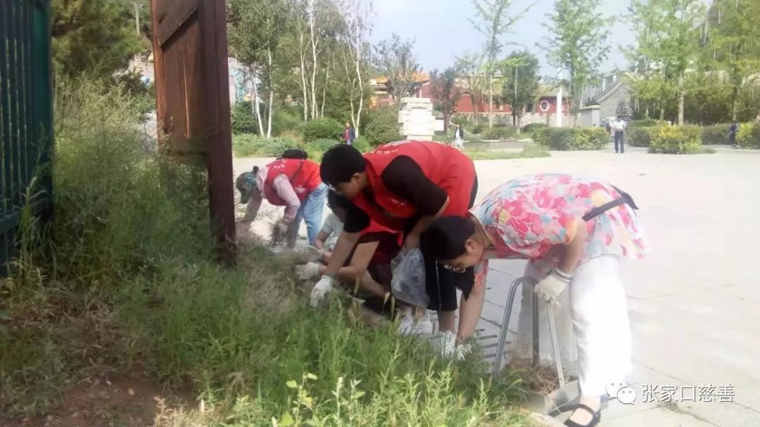 今天参与公益活动的共的有12位义工朋友。他们分别是来自张家口慈善义工联合会的文物保护队、长城护卫队、雷锋精神服务队。在景区服务中心做清洁准备时,有个好心的王大姐为我们志愿者捐助了好多白手套,让大家捡垃圾时双手有层保护,这让在场的义工朋友十分感动。志愿者玉蝶姐还给我们每人发了一次性手套,一幕幕的感动无处不在。今天景区的清理任务是花坛里的杂草。说干就干,大家心往一处想,劲往一处使。义工们一会儿就清除了一大堆杂草。我们女同志们也是巾帼不让须眉,男士们拔下来的草,女同志们边扫边收拢,整齐的堆在一起,大家干的热火朝天。虽然我们来自不同的义工团队,头一次一起做志愿者服务,但大家精诚合作、尽显默契。希望以后各个义工团队经常组织,大家一起参加的各种志愿活动。