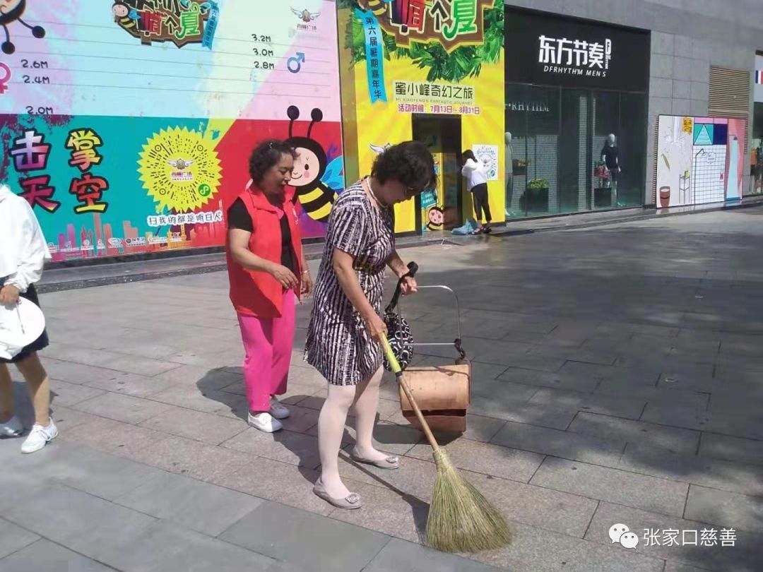 七月盛夏,艳阳高照。正值二伏第二天的张家口,温度高达32度,正是“赤日炎炎似火烧,山城张垣温度高”,而就在这“公子王孙把扇摇”的时段,竟然有十七个大妈却在义务清洁卫生,她们就是张家口经开区威风锣鼓队的队员们。在队长张凤英的带领下,走上街头,协助环卫工人清洁街头卫生。于尚峰广场永辉超市附近,这群大妈们,每人手持簸箕、扫帚、塑料袋,认真的收集地上的垃圾。