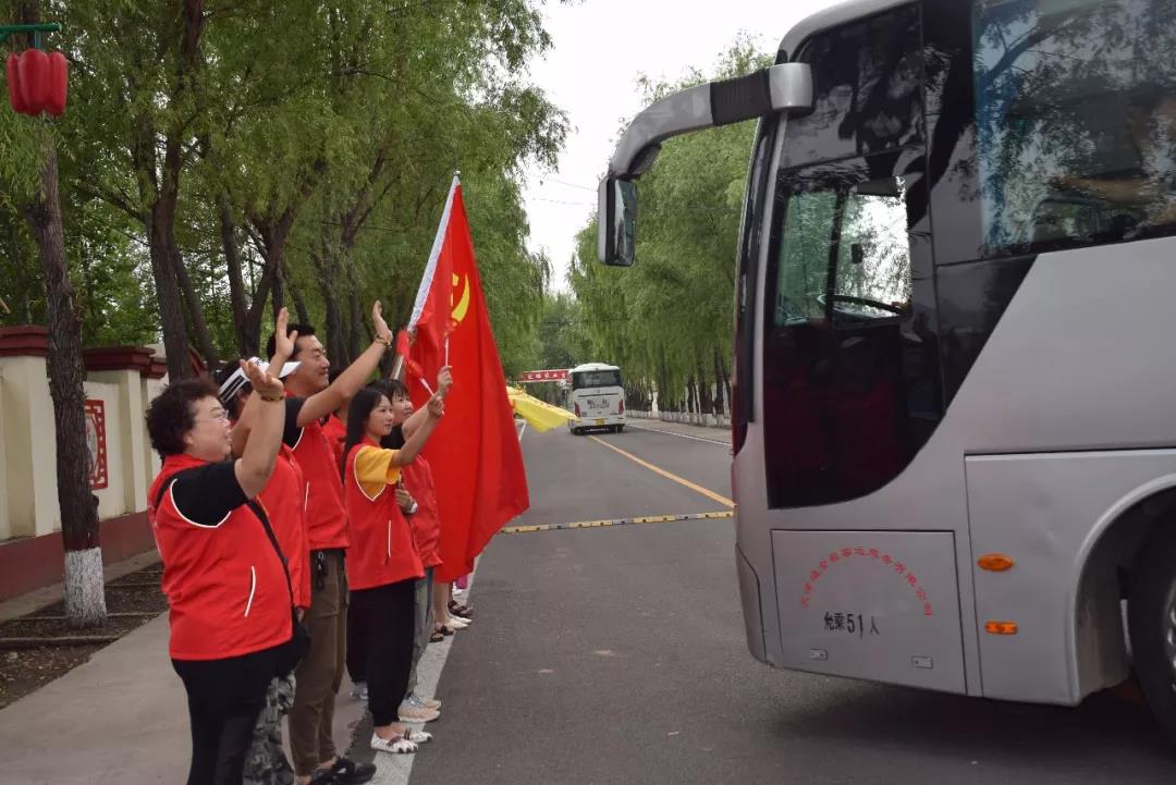 老兵们走了,志愿者们整齐有序地站成一排与老兵们挥手再见,英雄团队的光荣战士,再见啦!希望你们常回家看看,祝福你们一路平安!