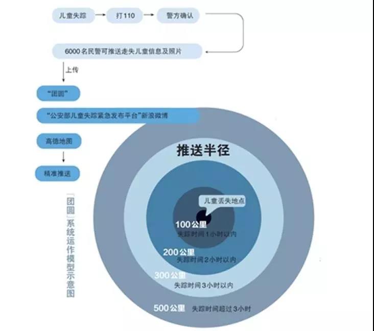 什么是团圆系统呢? ▼ 它是覆盖超9亿人口的儿童失踪信息发布平台(该系统是公安部 2016 年创立,由阿里巴巴提供技术)它可以将儿童失踪信息自动推送到失踪地周边的相关人群,在最短时间内让最多的人看到失踪信息,从而获取线索。