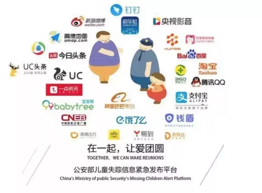 然后该信息会通过其合作的25家平台(新浪微博、高德地图、支付宝、UC头条、UC浏览器、手机淘宝、YunOS系统、腾讯QQ、一点资讯、今日头条、百度地图、百度APP、360手机卫士、滴滴出行、中央人民广播电台国家应急广播中心、腾讯新闻客户端、钱盾、宝宝知道、易到、OFO、宝宝树、新华社客户端、央视影音客户端、饿了么、点我达25家平台,总覆盖人口高达9亿多)立即推送给附近的人。 作为个人我们可以尽可能多的关注孩子失踪的信息,也许你的一次无意转发,就能挽救一个孩子的性命,就能拯救一个家庭。不要等待英雄,我们每个人都可以是别人的英雄。