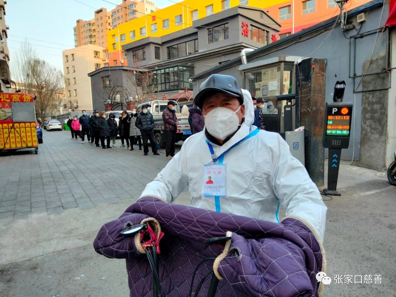 在疫情一次次来袭的时候,张家口慈善义工联合会党委第一时间发出倡议,号召广大志愿者在做好自身防护的前提下,主动作为、服务大局,积极营造疫情防控人人有责、人人尽责的社会氛围。张伟带领的新华苑社区志愿者服务队,按照福德仁爱公益队部署的就近助力社区积极参与疫情防控工作的原则,与新华苑社区书记赵志超及时联系,主动请战,参加了9月份、10月份、11月份的社区核酸检测工作。
