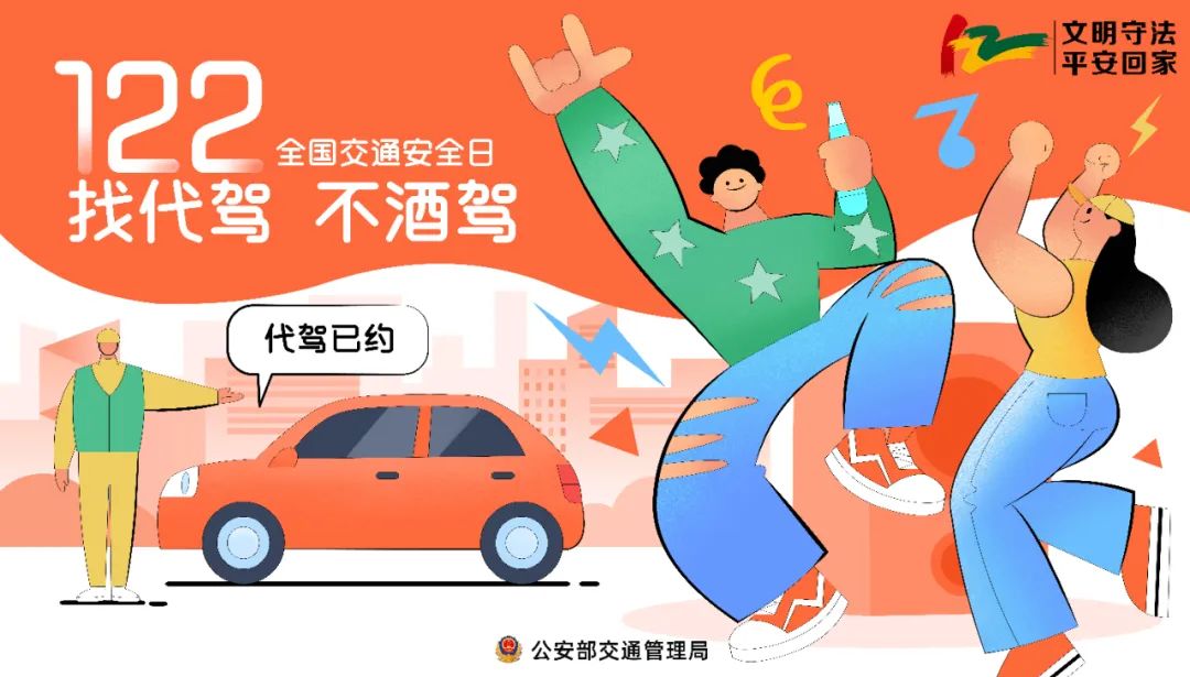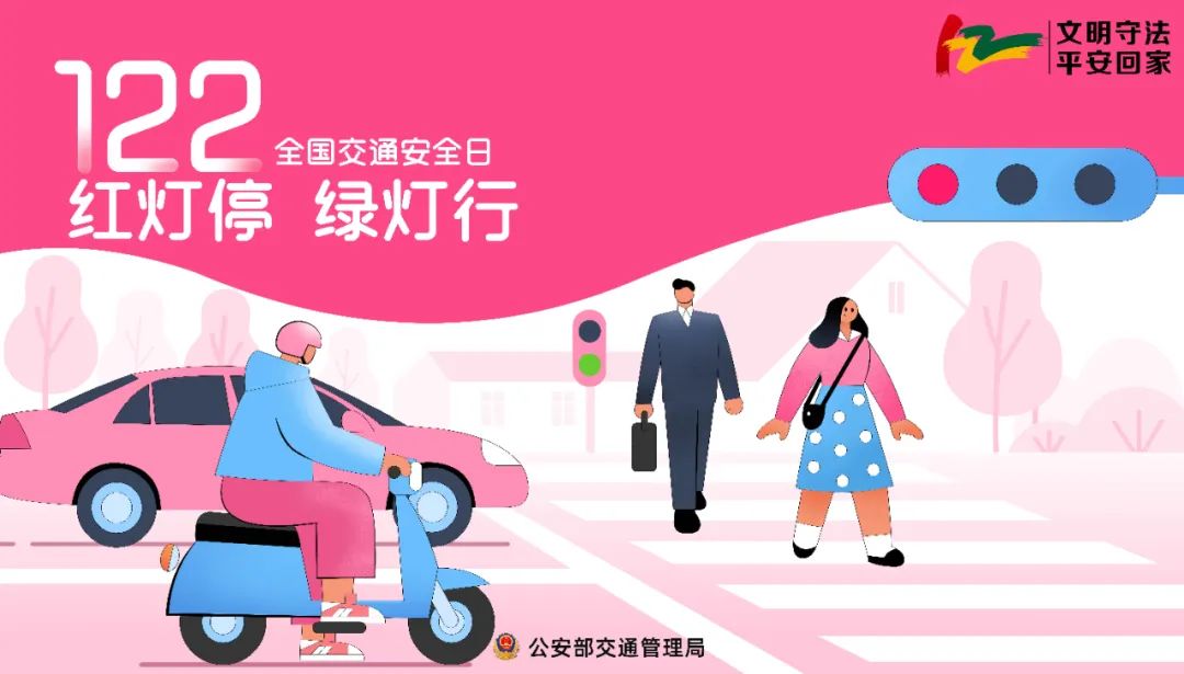 122来了! 今年12月2日是第十一个“全国交通安全日”。公安部、中央网信办、中央文明办、教育部、司法部、交通运输部、应急管理部 、共青团中央决定以“文明守法 平安回家”为主题,共同组织开展第十一个122“全国交通安全日”主题活动。
