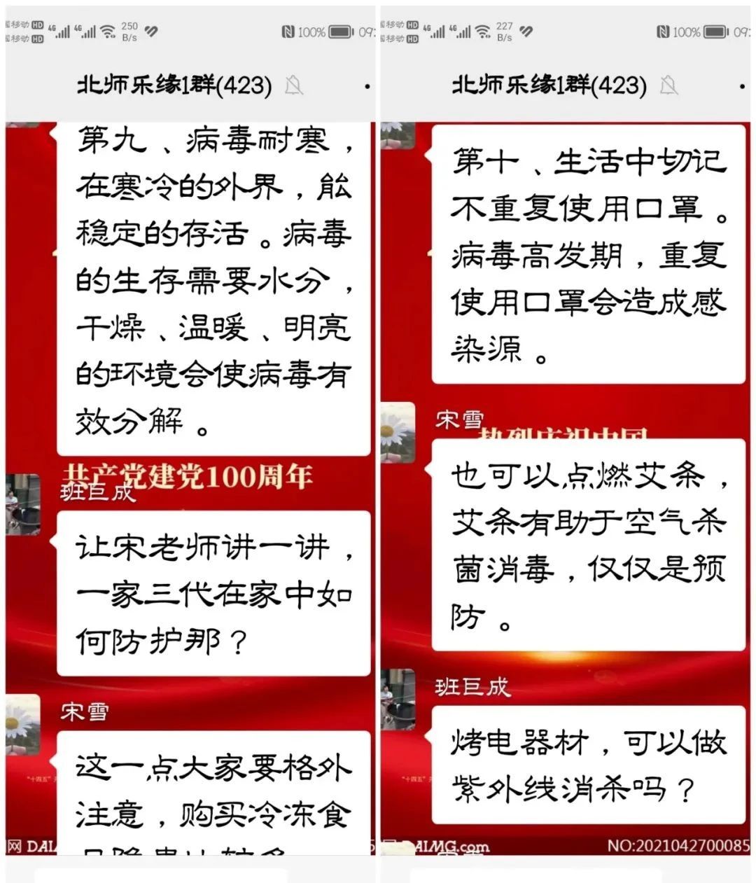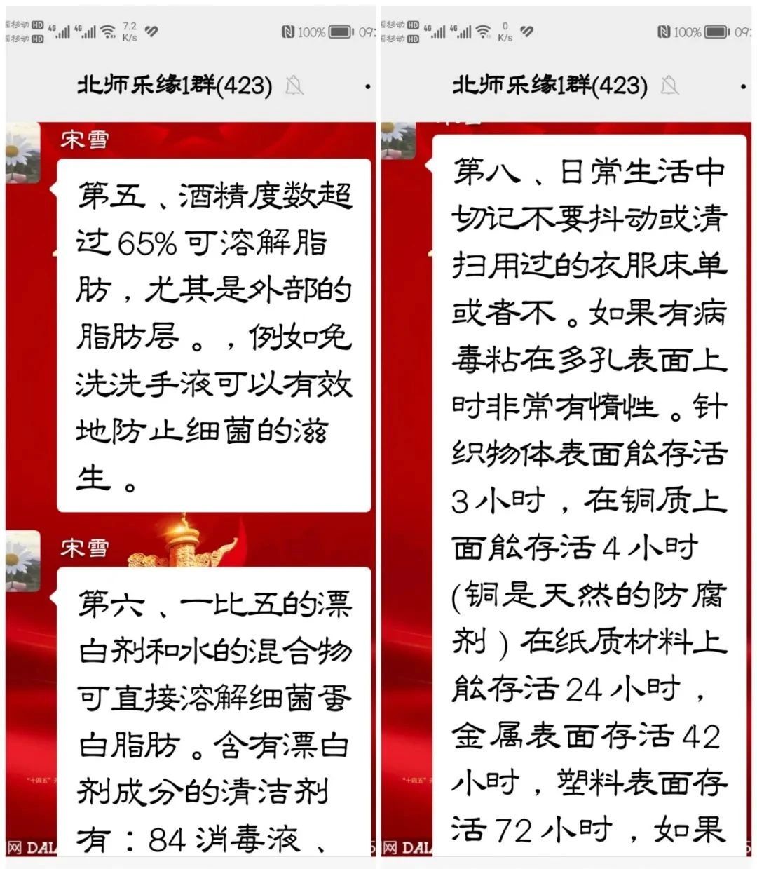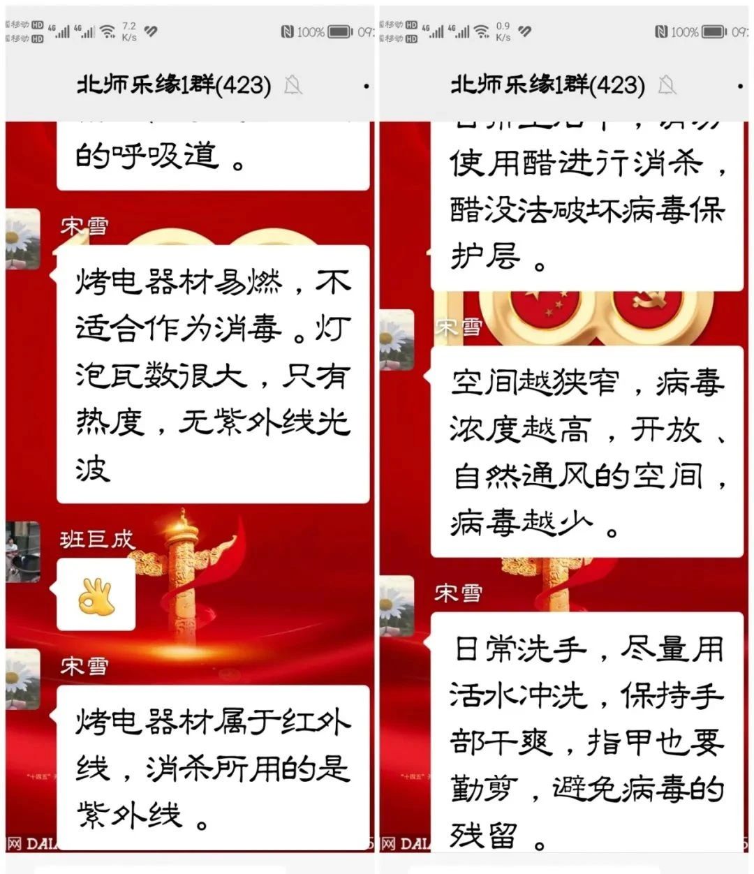 ![]() 宋雪老师首先对新冠的认知上做了说明:新冠病毒不是活体,而是被脂肪层覆盖的蛋白质分子,当被眼或黏膜细胞吸收时会发生改变,转化为攻击者侵入人体。在认知上对新冠病毒有了一个理性认识。那么如何防、治新冠肺炎呢?宋雪老师讲:其实新冠病毒非常脆弱,唯一能保护它的是薄薄的脂肪外层,这也就是肥皂或清洁剂都是预防新冠的办法,因为泡沫会割伤脂肪,在日常洗手时,我们必须要保证双掌摩擦20秒或更长时间,产生大量的泡沫,溶解脂肪层,蛋白质分子会自行分散并分解。热也可以融化脂肪,平时用25°C以上的水温来洗手、洗衣服及所有物品,借助热水会产生更多的泡沫,从而杀灭病毒,更有效果。 酒精度数超过65%的酒精可溶解脂肪,尤其是外部的脂肪层,例如免洗洗手液,可以有效防止细菌的滋生。一比五(1:5)的漂白剂和水的混合物,可直接溶解细菌蛋白脂肪,含有漂白剂成分的清洁剂有,84消毒液、爆炸盐等。 ![]() 病毒不是细菌那样的生物,无法使用任何抗生素来杀死这些没有生命的病毒体,只能通过以上方法来迅速溶解病毒的结构。在日常生活中,切记不要抖动或清扫用过的衣服或床单,如果有病毒粘在多孔表面上时非常有惰性,针织物体表面能存活3小时;在铜质上面能存活4小时;在纸质材料上能存活24小时;在金属表面能存活42小时;在塑料表面能存活72小时,如果抖动衣服或使用鸡毛掸子,时间可长达3小时会借此机会,进入我们的呼吸道受到感染。病毒耐寒,在寒冷的外界能稳定的存活,病毒的生存需要水分,干燥、温暖、明亮的环境会使病毒有效分解。 大家要格外注意,购买冷冻食品隐患比较多。生活中切记不重复使用口罩,病毒高发期,重复使用口罩会造成感染源。 可以选择浓度65%以上的酒精喷雾进行消杀,请勿使用醋进行消杀,醋无法破坏病毒保护层。生活空间越狭窄,病毒浓度越高,应开放、自然通风的空间,使病毒越来越少,以减弱感染程度。在日常生活中,洗手尽量用活水冲洗,保持手部干爽,指甲也要勤剪,避免病毒的残留。 宋雪老师同时还和群里的友友们进行了互动,解答他们提出的问题,如也可借助紫外线消毒设备,来进行消杀家庭的环境;还可以点燃艾条,有助于空气杀菌消毒。 ![]() 假如感染呈阳性,如何和家人隔离?现在大多数人均属于无症状感染者,所谓无症状感染者通常是指在患者的检测标本中,可以检测到新型冠状病毒,患者却没有临床症状的意思;另一种是处于潜伏期的确诊患者,在潜伏期间,没有任何临床的表现,过了潜伏期之后就会出现典型的新型冠状肺炎症状,比如咳嗽、发热、乏力等呼吸道症状。从中医上来说,多喝热水,增加身体代谢,出汗排毒,也可以自愈。 抗原已经呈阳性,要注意戴手套,戴口罩,不与家人接触。尽量保存体力,减少活动,多休息。单人单独房间隔离,勤通风,不与家人混用生活用品,用淡盐水漱口,清洗鼻腔,减少对呼吸道感染。 总之,宋雪老师讲的内容丰富、通俗易懂、简明实用,听课的家人们不仅掌握了防护治疗新冠的科学知识,而且还有针对性的指导,科学防护,安全渡过难关。并对宋老师的精彩讲解表示感谢。 ![]() 最后,把线上讲解概括成聊天记录的形式,以方便保存转发,有的群友说,我己经转发给我们家庭群里了,有的说我己经转发给我们工作群里了,共用同分享,爱的传递,随着群友们的不断转发,这个专题讲解的受益面会不断增加,是一次成功的、有意义的活动,起到了立竿见影的效果。 撰稿: 庞润平审核: 陶京峰来源: 北师乐缘义工之家 |