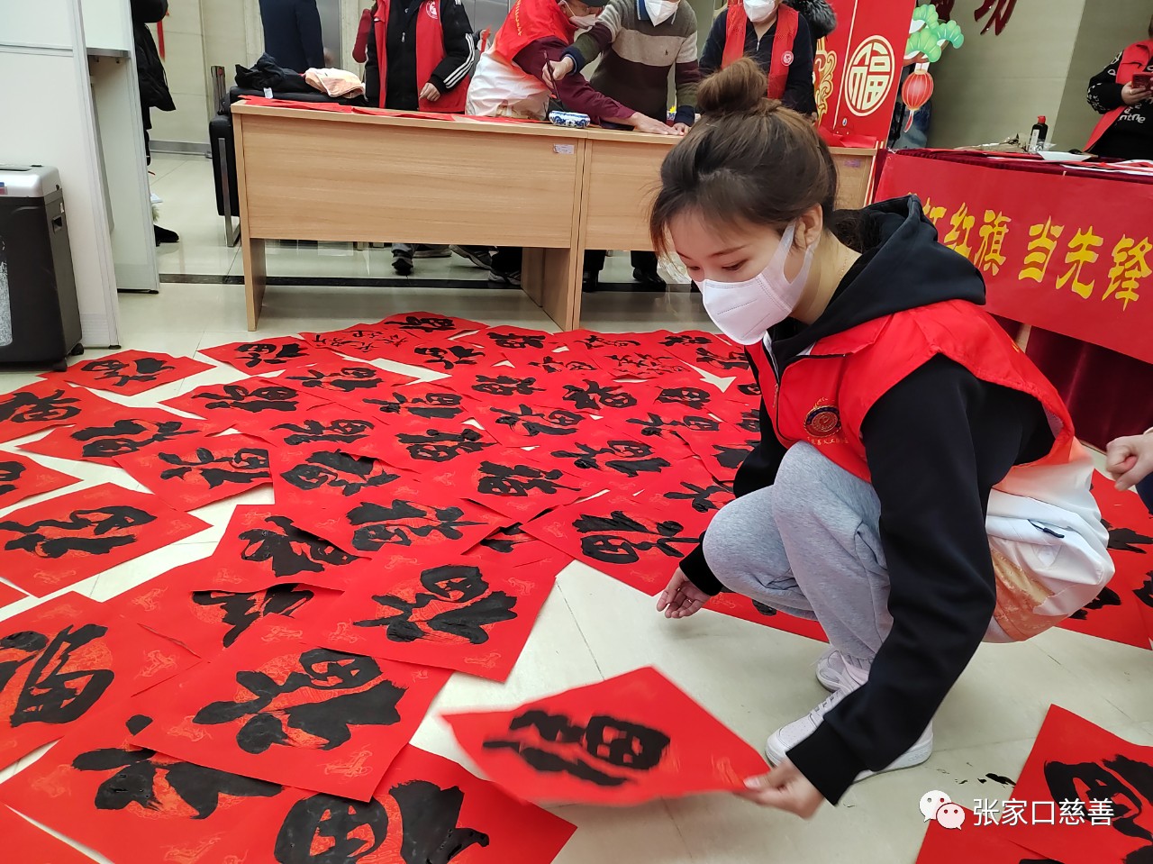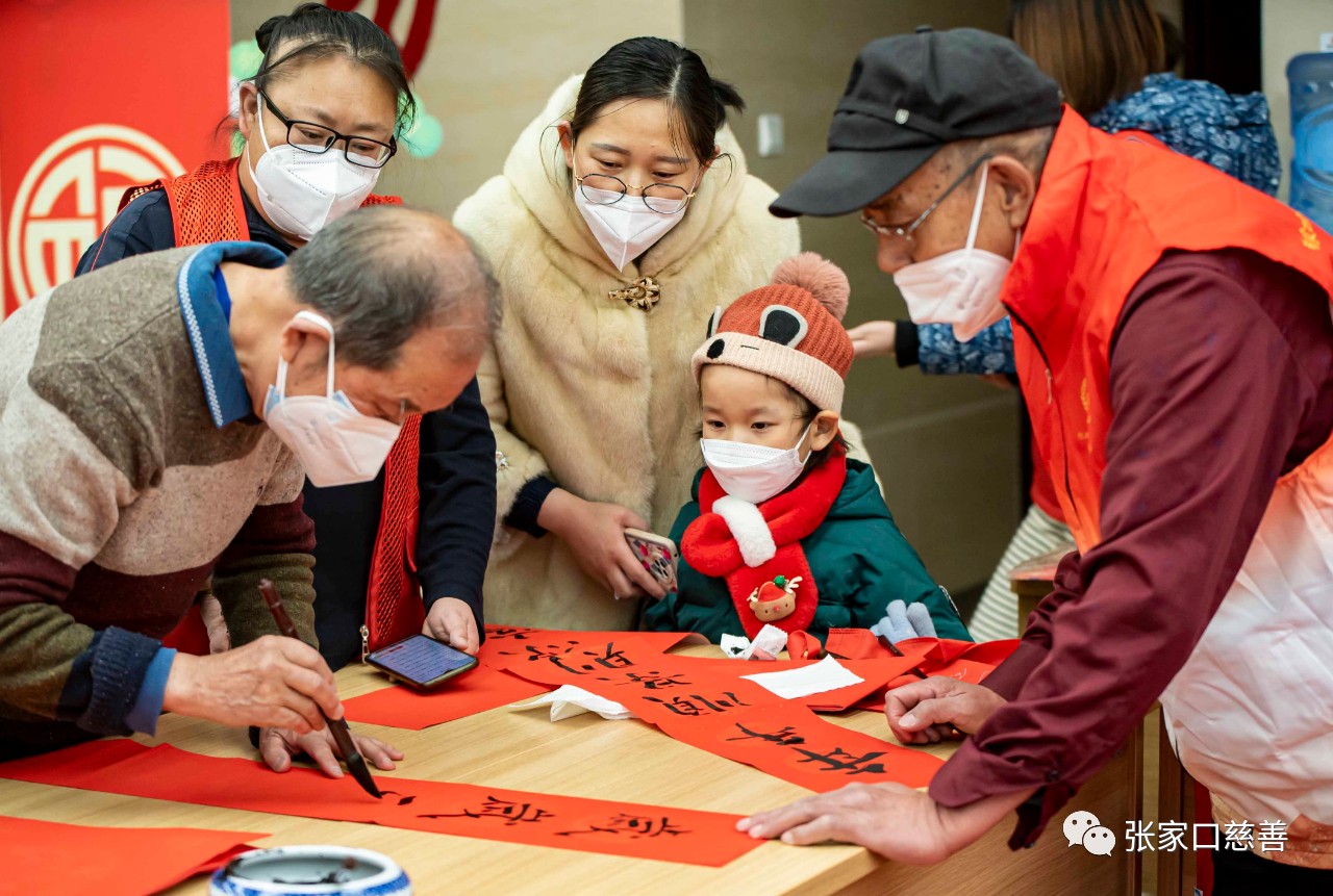 在兔年新春佳节即将来临之际,1月5日,经开区慈善义工联合会携手长宁街社区、张家口银行凤凰城支行特邀张家口书画协会书法老师常庆生、张宝贵、强海明,和书画爱好者薛振宝四位老人在凤凰城支行营业大厅开展了一场写春联送祝福活动。