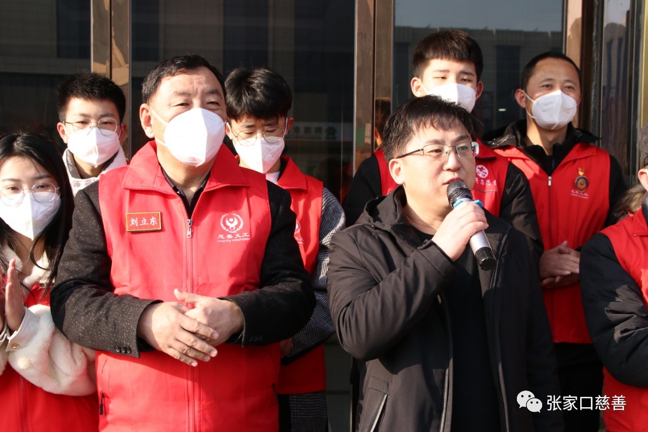 刘立东会长代表阳慈联首先感谢各级领导、社会各级人士对阳原爱心平台的关心和支持,他说,2023年新春佳节即将来临,我们举办“新春送暖,发放助学金”活动,就是为了解决贫困学生的困难,为他们送去新春的祝福!刘会长说,阳原慈善义工联合会是一个爱心平台,五年来,紧紧围绕县委中心工作,秉承“为党增光添彩,当好政府助手,奉献一片爱心,共创美好社会”的光荣使命,面向社会,服务大众,踔厉奋发,勇毅前行,在助学敬老、扶弱济贫、文明创城、抗击疫情、应急救援、冬奥服务、乡村振兴、慈善交流等各项工作中扛红旗,当先锋,每年组织各类慈善公益活动600多场,资助困难学生500多名,送出善款50多万元,送出各类爱心物资30多万元;慰问老党员、老兵、五保户、残障人士等1100多名,送出善款50多万元,为创建平安,和谐,美好阳原做出了积极贡献。我们实施爱心工程,一方面通过广泛动员社会各界慷慨解囊,为社会传递一份真情,帮助家庭困难的学生顺利完成学业,为全县教育事业尽一份绵薄之力,为祖国的未来贡献一份力量;更重要的是,进一步唤起全社会弘扬扶贫济困、助人为乐的传统美德,倡导全民重视教育,为国分忧的良好风尚。2022年,是我们党和国家历史上极为重要的一年,我们胜利召开党的二十大,描绘了全面建设社会主义现代化国家的宏伟蓝图。在新的一年里,让我们更加紧密地团结在以习近平为核心的党中央周围,全面落实党的二十大精神,坚决拥护“两个确立”,坚决做到“两个维护”,勠力同心,勇毅前行,在全面建设社会主义现代化国家、全面推进中华民族伟大复兴的征程上做出新贡献。我们相信,在县委、县政府的正确领导下,在爱心人士积极支持下,在广大志愿者辛勤努力下,我们的慈善公益事业一定会取得更大的成绩!