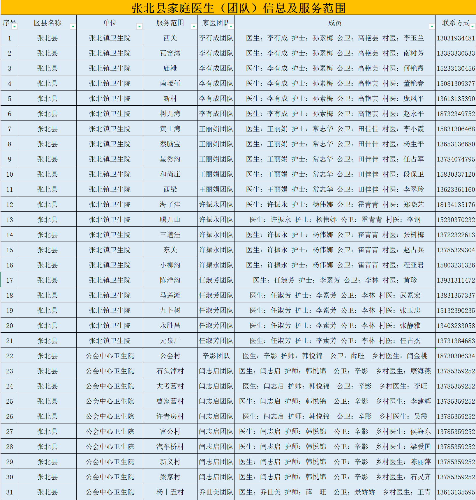 张家口市宣化区家庭医生(团队)信息及服务范围公示