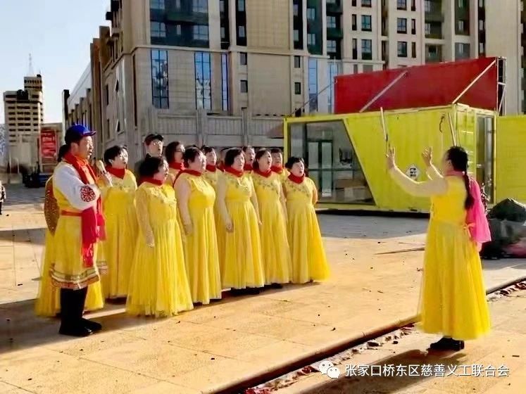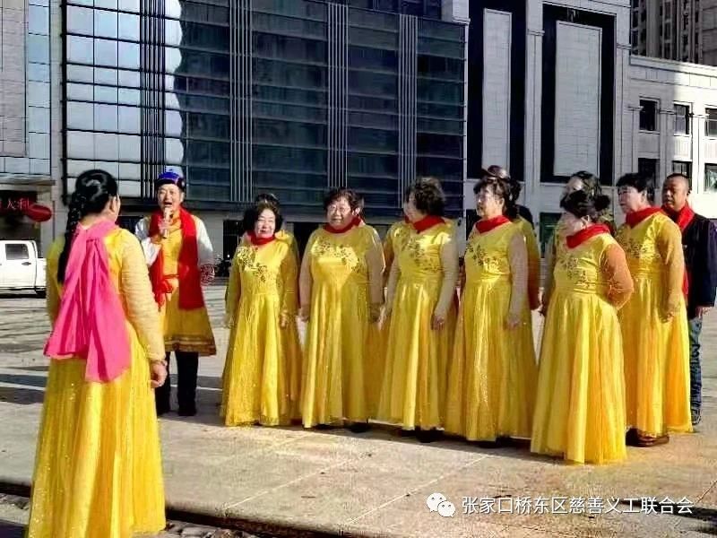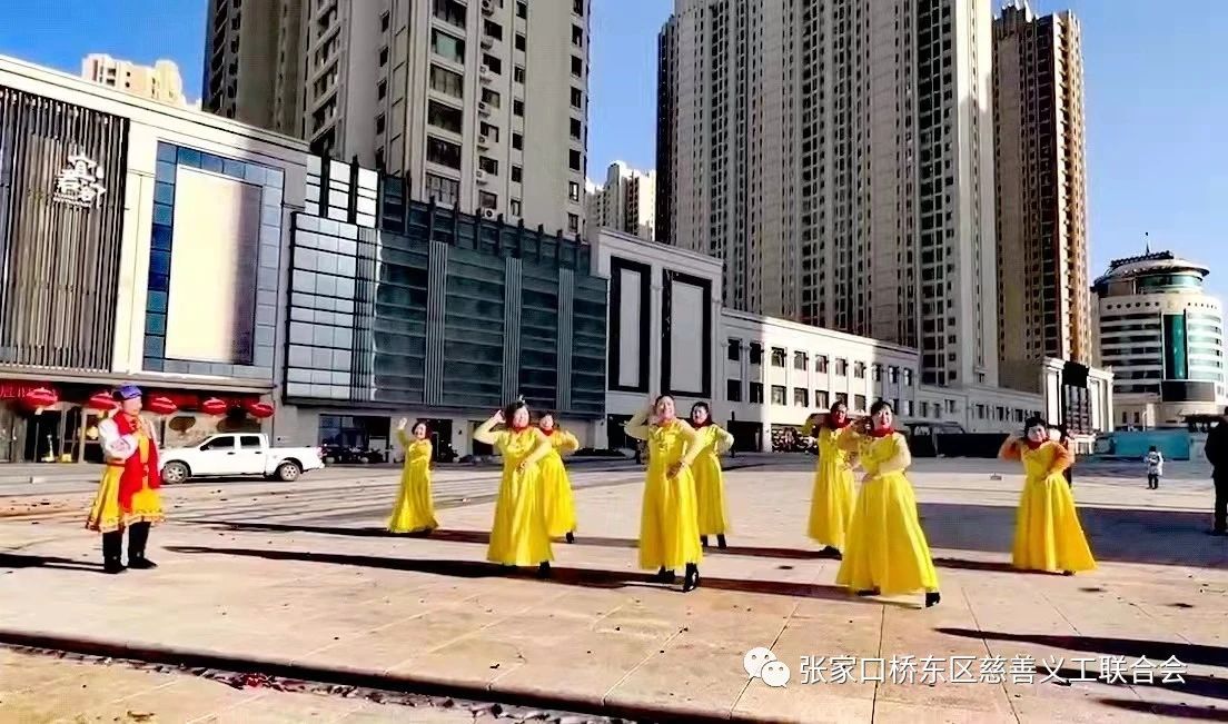辞旧迎新庆佳节,大家还沉浸在佳节的欢乐之中,1月25日(大年初四)下午,湛蓝湛蓝的天空没有半点云朵,明媚的阳光照耀着清水河两岸,清水河里满河的晶莹的冰面,反映着耀眼的阳光。北师乐缘和谐姐妹舞蹈队代表万嘉社区和东山社区参加了五一路街道组织的“金兔迎春,乐享桥东”民间社火活动,演出活动在滨河路新五一广场,广场周边围满了前来观看的民众,15:00整演出活动在动听的乐曲声中拉开了帷幕,首先出场的是北师乐缘和谐姐妹舞蹈队代表万嘉社区表演大合唱《没有共产党就没有新中国》和《打靶归来》,嘹亮的歌声传遍了清水河两岸,喜气洋洋的歌声,唱出了百姓对新春佳节的欢乐和喜悦,充满了对党和军人的无限热爱。