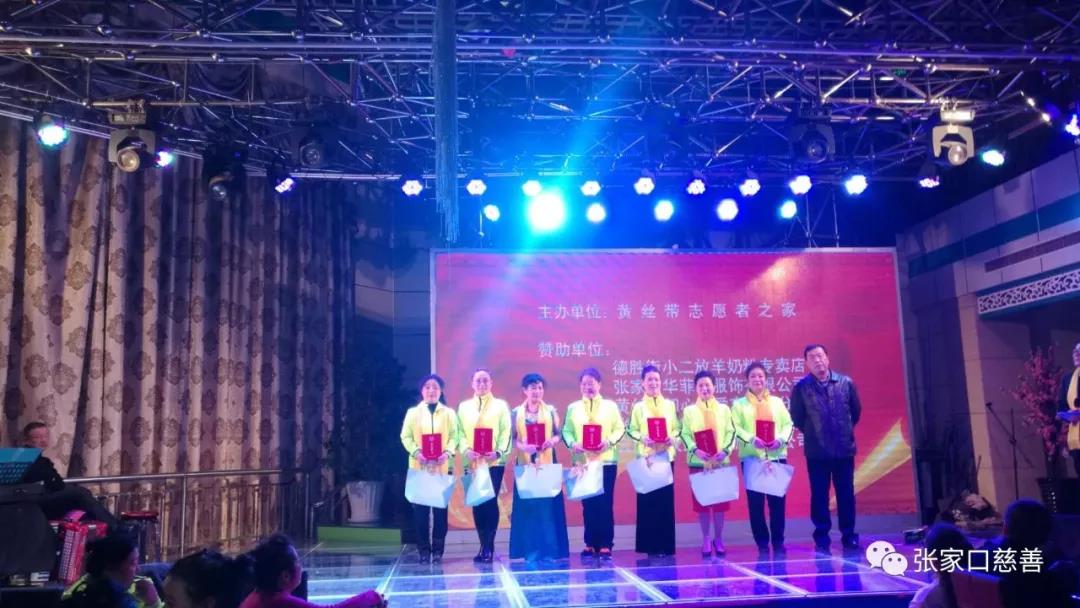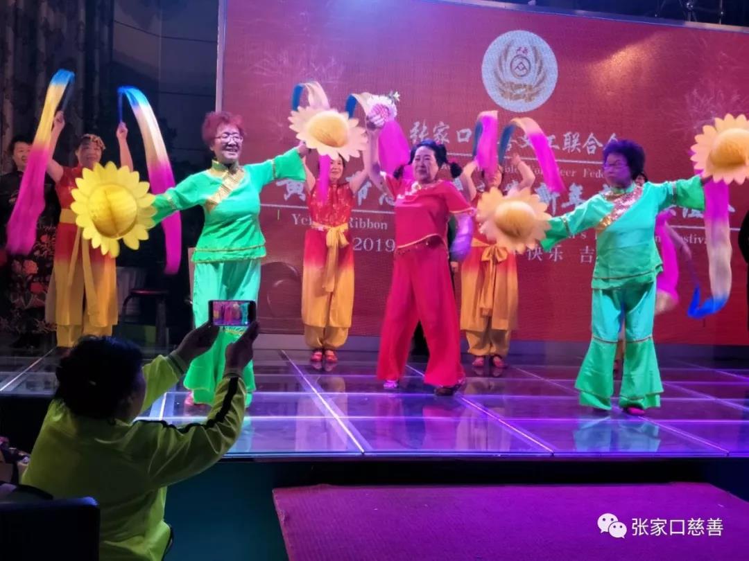 黄丝带志愿者团队的队长老师们,在最短的时间内,赶排了一个蒙族舞蹈《搓手舞》,大家不辞辛苦,特别是我们几位男队长老师们,牺牲休息时间,勤学苦练,在较短的时间内,很好的完成了规范动作。他们向大家展示的是热爱团队的热情与真诚。这个节目台上台下互动,展示了整个团队朝气、团结、积极向上的精神风貌。晚会现场有位残疾人,他是来自爱心连的李涛,这位上世纪九十年代参军的爱心连老战士对黄丝带志愿者事业充满激情,积极参加各项公益活动,为爱心连、为黄丝带志愿者之家树立了榜样。晚会现场,张慧琴、洪梅、郑翠香三位老师自告奋勇为晚会拍摄视频,晚会时长四个多小时,她们站姿、蹲姿、甚至跪着拍摄,坚持到晚会结束。