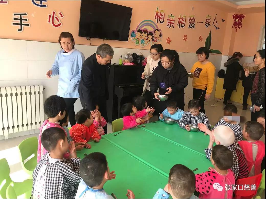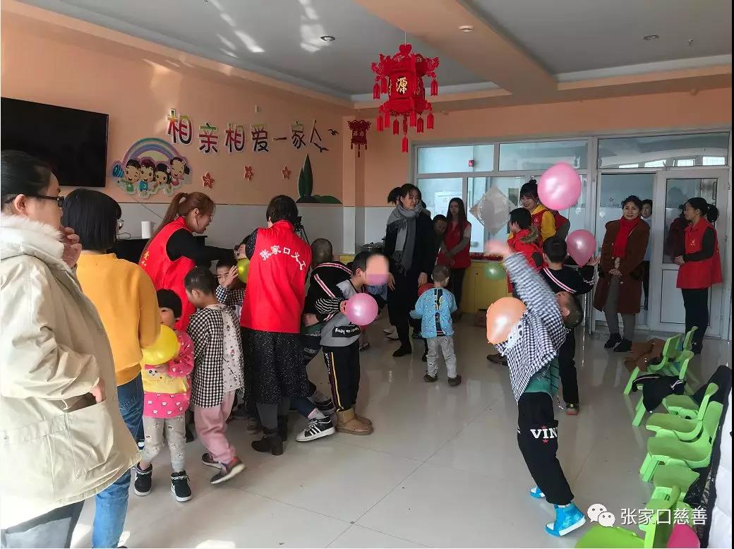 为了让福利院的儿童感受到传统元宵节日民俗的乐趣,感受来自社会大家庭的关爱,2019年2月19日上午,张家口市未成年人社会保护中心张垣博爱社会组织携手张家口慈善义工联合会双工发展委员会、光之爱团队、张家口电视台以及来自中学的爱心学生们一起走进张家口市儿童福利院,为福利院的孩子们过一个传统热闹的元宵佳节。 孩子们热情的迎接了我们的到来,活动即将开始,主持人亲切的向孩子们介绍了今天陪他们一起过节的叔叔阿姨、哥哥姐姐们,孩子们开心的向大家打招呼,接下来由光之爱的晓泳老师带领孩子们进行“头肩拍拍”的热身活动开始和孩子们互动,孩子们都很认真的听并且积极跟着晓泳老师一起做! 热身过后,进入蒙眼睛猜字的游戏,爱心学生们参与到活动中,一个书写一个蒙眼睛猜字,晓泳老师把要猜的字展示给孩子们看,并示意大家不要出声,游戏让孩子们既紧张又激动。晓泳老师接着又组织孩子们进行双人夹气球的游戏,并且示范给孩子们看,孩子们排好队,拿到气球像老师一样进行游戏,大家玩的不亦乐乎,最后,晓泳老师让孩子们把气球拍上天,拍的越高福气越多,孩子们铆足了劲把气球拍上天,晓泳老师告诉孩子们随着落下的气球把它踩响,声音越响,梦想开花,活动室内欢腾的场面瞬间将活动推向高潮! 张家口慈善义工联合会婷婷老师安排孩子们坐下休息,带着孩子们一起玩拍手游戏,婷婷老师问孩子们一分钟可以拍多少下手,孩子回答迥异,实际操作拍手计时,活动室内掌声一片,计时结束,老师问孩子们拍了多少下,孩子们的回答都比操作前的数量多,老师告诉孩子们做的永远要比想的好。 游戏结束了,为了让孩子们休息,我们发放提前准备好的小零食,另一边,张喜梅主任带领大家为孩子们煮汤圆,汤圆煮好后,当我们为孩子们端上这一份份热呼呼的汤圆,看到他们迫不及待的小表情,我们的心都萌化了,怕孩子们吃汤圆会烫到,我们细心地用小勺舀起汤圆,等放凉了在让孩子们放到嘴里,孩子们嘴里吃着汤圆,脸上露出了幸福的笑容! 孩子们热情洋溢的笑脸,精彩的游戏活动,热气腾腾的汤圆,组成了温馨的画面,让孩子们在欢乐融洽的氛围里,感受家的温暖,让我们多给孩子们一些关爱。关爱未成年,从福利院的小天使开始!期待着下次和孩子们再相聚!