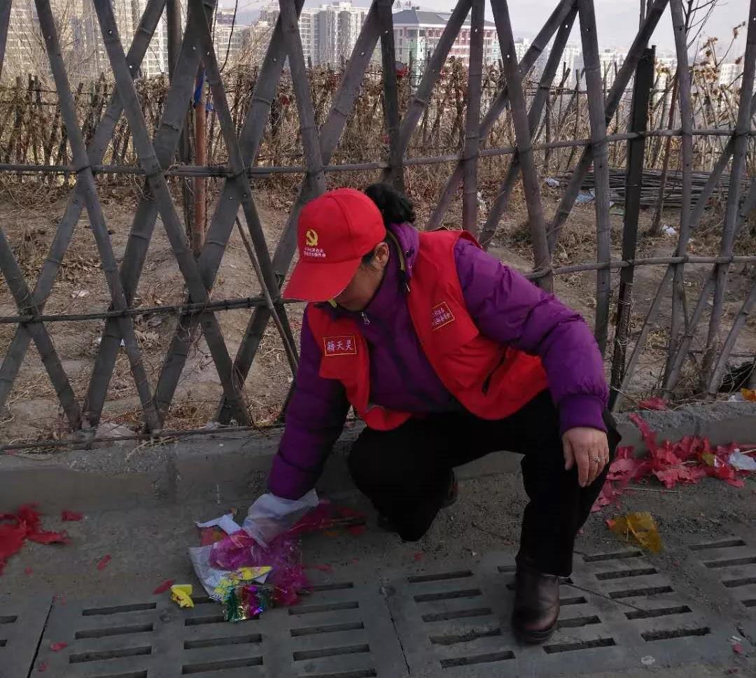 吴华萍老师感冒了,一边捡垃圾、炮皮、香纸一边咳嗽。和凤英老师不怕脏和累,拿起扫帚、簸箕就开始扫地。李淑芬老师的右手大拇指裂了个大口子,还在流着血,她既捡垃圾又扫地。有一位中年女士被我们的行动所感动,主动向我们提出,要加入我们的黄丝带志愿者之家,并和我加了微信。游客有疑问,我们耐心解答,我们的耐心和行动得到了好多游客的一致好评。