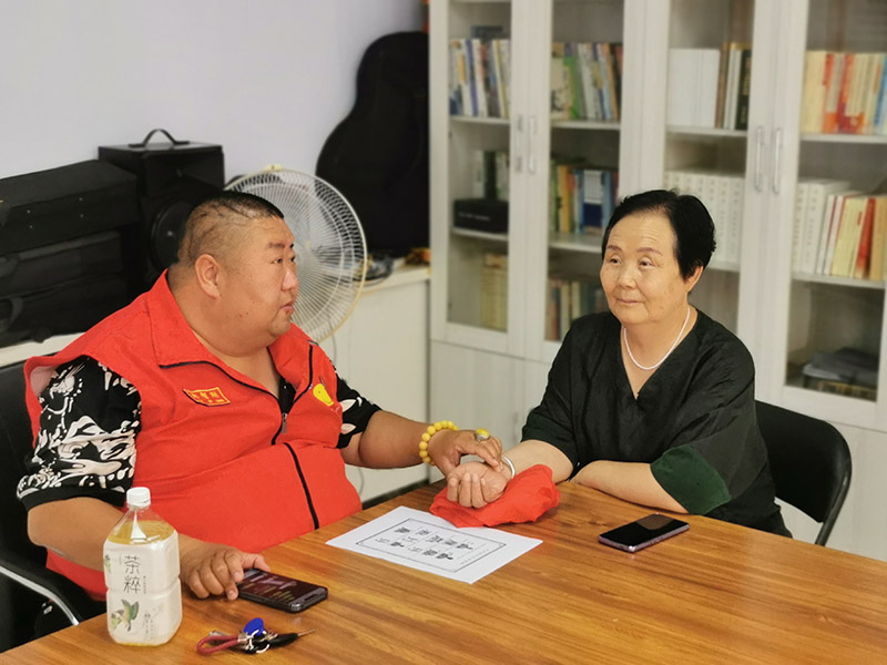医务志愿者通过把脉问诊详细了解个人体质情况,因人而异选择穴位贴敷,耐心叮嘱大家贴后避免空调直吹、注意贴敷部位皮肤变化。医务志愿者还对居民提出的养生问题予以解答。