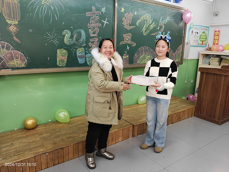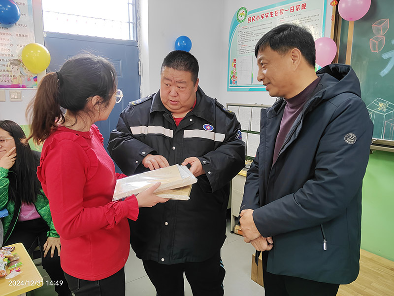 此次联欢活动,不仅是一次欢乐的聚会,更是爱心的传递与交融。队长韩智刚代表志愿服务队为班级送去了作业本和笔等学习物资,这些看似普通的物品,却蕴含着志愿者们对孩子们深深的关爱和殷切的期望。希望这些学习用品能够助力孩子们在知识的海洋中畅游,追逐自己的梦想。