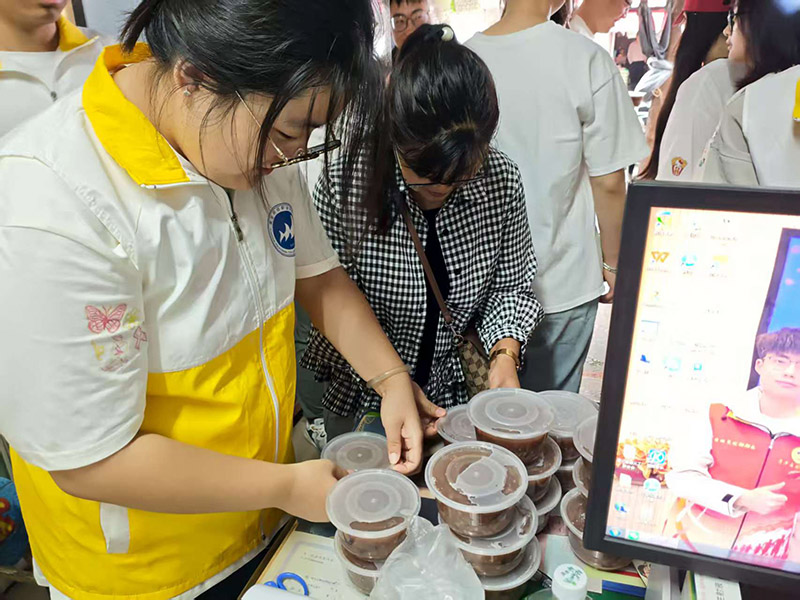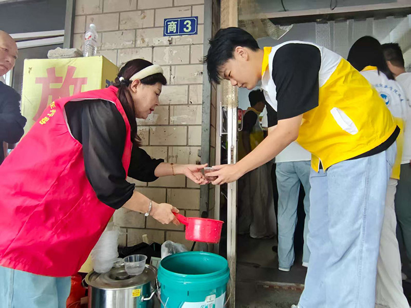 除了贴心的健康服务,活动现场还弥漫着浓浓的粥香,这源于宣慈联秘书长韩智刚的暖心筹备。为了让参与活动的居民,尤其是老年群体能在微凉的雨天喝上一口热粥,韩智刚提前精心准备了八宝粥食材,并联系到青青饭店合作熬制。活动当天,青青饭店老板同样冒着大雨,亲自将熬煮得软糯香甜的八宝粥送到活动现场。一碗碗热气腾腾的八宝粥,不仅驱散了雨天的寒意,更温暖了居民的心田。志愿者们端着粥碗,逐一递到居民手中,居民们接过热粥,脸上洋溢着幸福的笑容,连连向志愿者和爱心商家表示感谢。