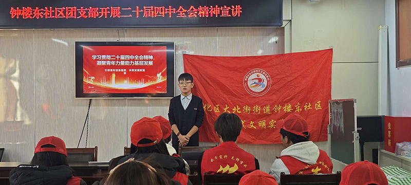 为深入学习贯彻党的二十届四中全会精神,推动政策理论在基层落地生根,11月25日下午三点,宣化慈善义工联合会联合信息传媒学院青年志愿者协会,在钟楼东社区二楼会议室成功举办“学习贯彻二十届四中全会精神,凝聚青年力量助力基层发展”主题宣讲活动。钟楼东社区青年居民、两所单位青年志愿者及周边院校青年代表齐聚一堂,共同聆听思想盛宴,凝聚奋进力量。
