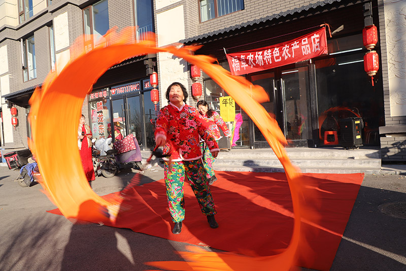 随着激昂的鼓点响起,开业演出正式拉开帷幕。由爱之团队带来的开场舞龙《好日子》率先登场,金龙翻腾跳跃,身姿矫健,将节日的喜庆氛围推向高潮,寓意着福卓超市未来生意兴隆、蒸蒸日上。随后,王金玲带来的女独《好日子》歌声嘹亮,传递出对美好生活的赞颂;张雪表演的舞蹈《女附马》舞姿优美,韵味十足,展现了传统艺术的独特魅力;石济兴演唱的男独《宣化我梦里的家》饱含深情,唱出了对家乡宣化的热爱与眷恋,引发现场观众的强烈共鸣。