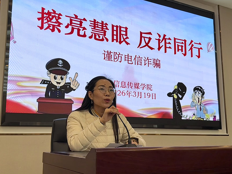 活动伊始,钟楼东社区书记郑青青发表致辞。郑书记指出,当前电信网络诈骗手段不断翻新,大学生群体涉世未深、防范意识相对薄弱,是诈骗分子重点侵害对象。她强调,开展反诈进校园宣讲,既是守护青年财产安全的务实举措,也是平安校园建设、基层社会治理的重要内容,希望同学们认真学习、牢记要点,做到知诈、识诈、防诈、反诈,共同守护平安和谐的校园环境。