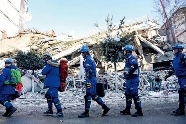 中国蓝天救援队队员在土耳其马拉蒂亚省参与搜救 图源丨视觉中国