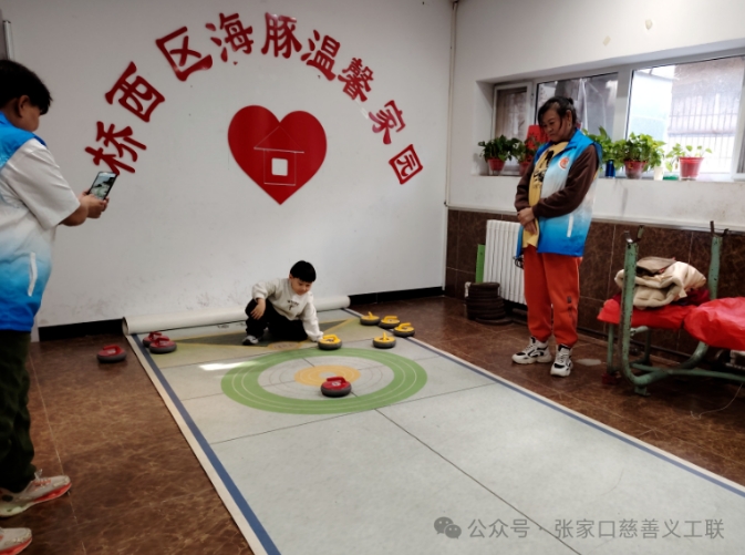 今天是新年后,海豚妇女儿童之家首次组织文体活动,大家早早地到达现场,打扫卫生、布置场地,一条仿真冰壶赛道铺设完毕,色彩鲜艳的冰壶摆放整齐,仿佛在向参与者们招手。十多天没有活动,感觉大家内心的热情都溢出来了,体内的“洪荒之力”也将破体而出,一个个摩拳擦掌,跃跃欲试,期待把假期积攒的力气全都使出来。