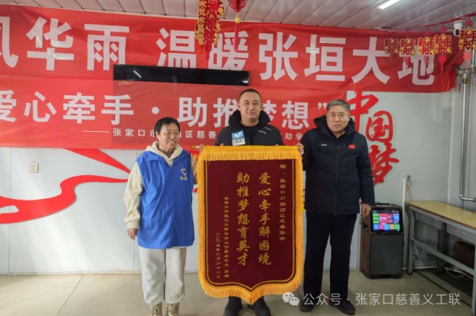 赵立昆与刘严潞代表市德风华雨服务中心向桥西区慈善协会赠送了锦旗,由会长刘超接收。这面锦旗不仅是对协会工作的肯定,更是对爱心人士无私奉献的崇高敬意。