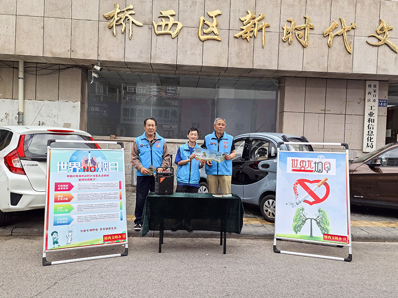 2025年5月31日是第38个“世界无烟日”,为了倡导健康生活方式,传递无烟生活健康理念,为自己、为家人、为社会筑起一道抵御烟草危害的健康防线,5月31日下午,桥东慈善义工联合会雷锋精神志愿者服务队在桥西区新时代文明实践中心门口,开展宣传创建无烟环境,吸烟有害健康的公益活动。
