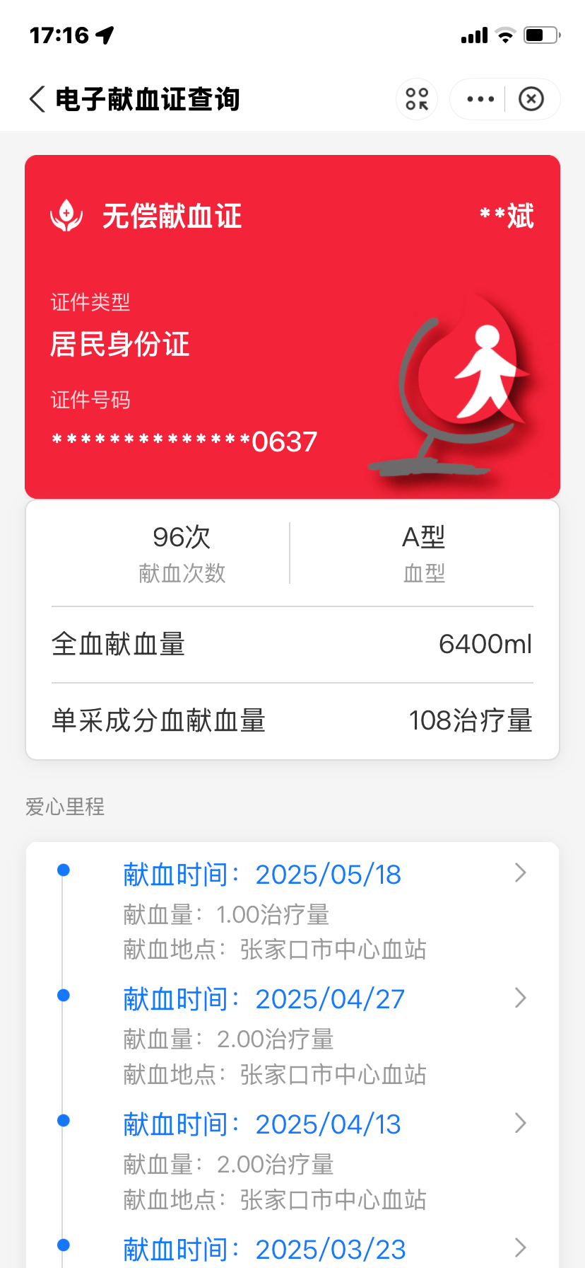 【福德仁爱】爱心献血97次的唐有斌
