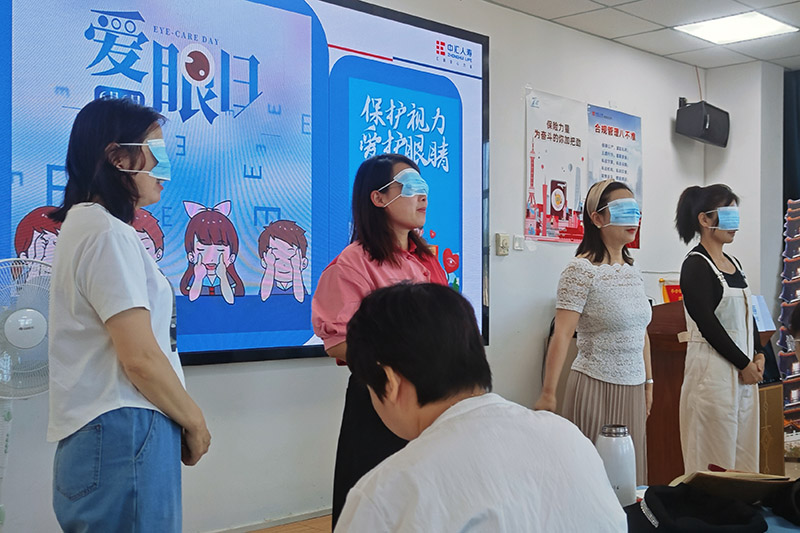 活动期间,主办方首先进行了爱眼护眼知识讲解。随后,中汇人寿志愿者积极参与蒙眼体验游戏环节。亲身经历后,一位志愿者分享道:“蒙眼做日常动作,听到外界干扰后心里特别慌乱,深刻体会到眼睛的重要性。”