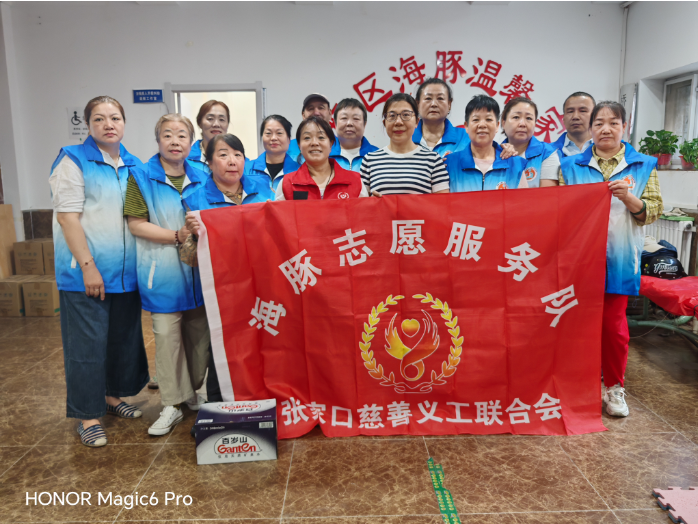 值得一提的是,在活动过程中,爱心人士黄玉芳女士来到现场,为海豚志愿服务队送来了 3 箱矿泉水,以实际行动表达对志愿者们的关怀与支持。这一爱心举动让队员们倍感温暖,也进一步增强了队伍的凝聚力和向心力。