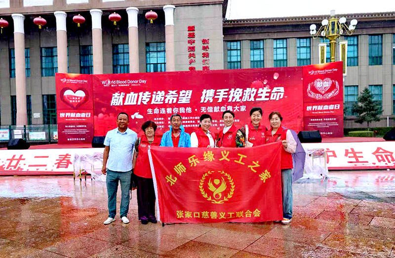 今年是第22个世界献血日,6月14日,瓢泼大雨倾泻而下,但这丝毫未能阻挡张家口市各界传递爱心的脚步。北师乐缘马德生和张雅宾两位副队长带领30余位志愿者早早来到活动现场,共同见证这场爱心传递盛会。