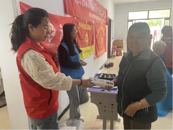 上午9时,捐赠仪式在南天门村正式开启。活动现场,社工和的志愿者们将爱心企业捐赠的牙膏有序地发放到困难村民手中,为他们的日常生活提供支持。